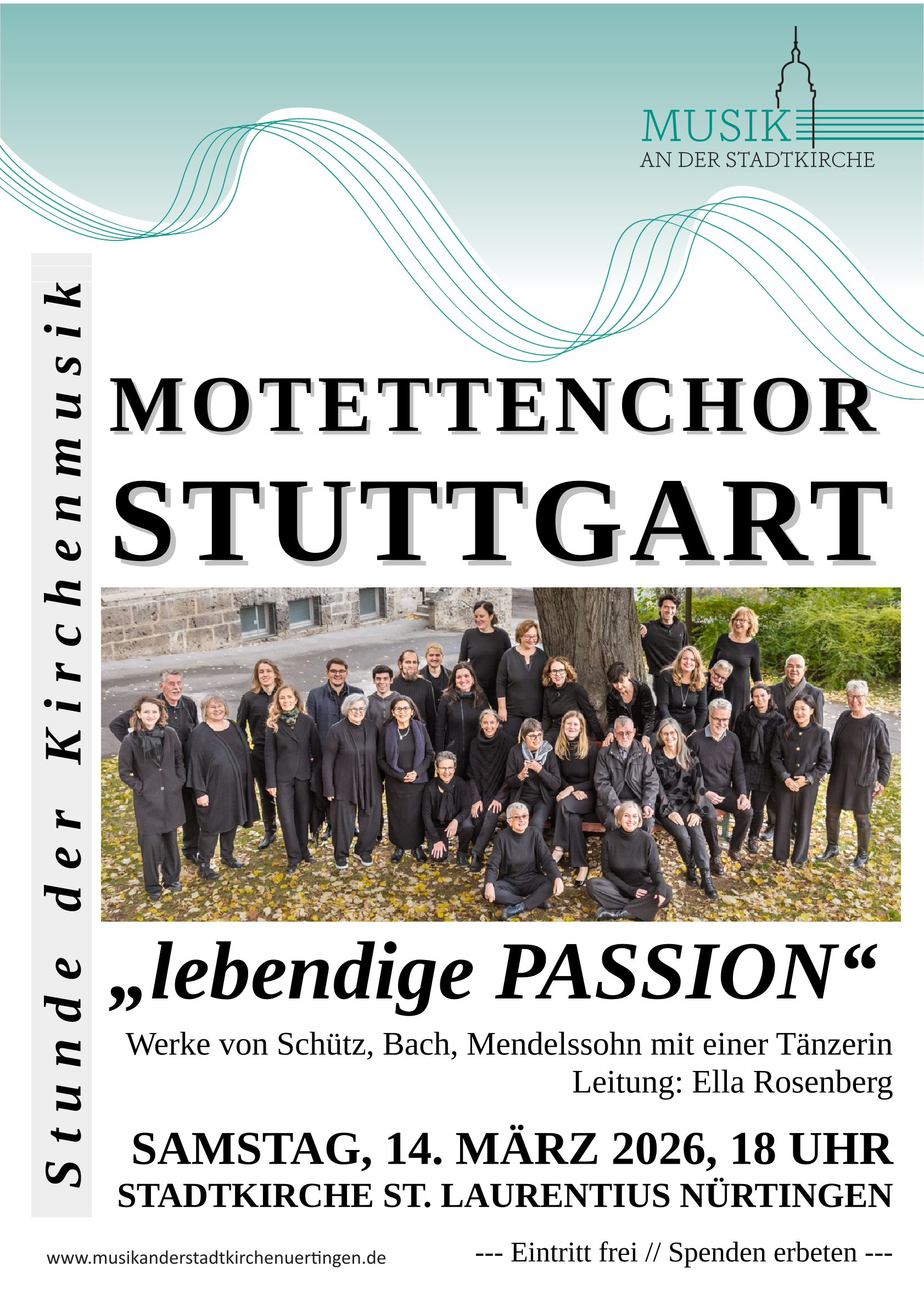 14.03.2026 – 18 Uhr, Stadtkirche Nürtingen "lebendige PASSION" 30.05.2026 – St. Aegidien Lübeck Zwei Chöre - Konzert mit "Chor der Singleiter", Lübeck 05.07.2026 – 19 Uhr, Erlöserkirche Stuttgart Zwei Chöre - Konzert mit "Chor der Singleiter", Lübeck 10.10.2026 – 19 Uhr, Matthäuskirche Stuttgart Jubiläumskonzert 75 Jahre Motettenchor Hommage an Günter Graulich 19. 12. 2026 –...